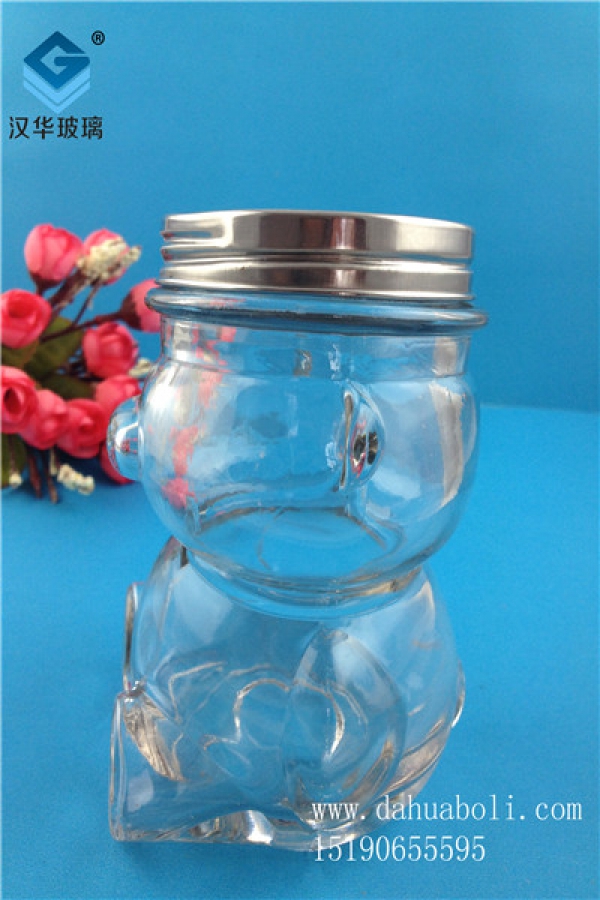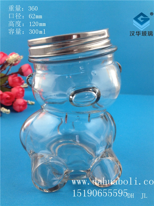 300ml歪頭熊玻璃糖果罐