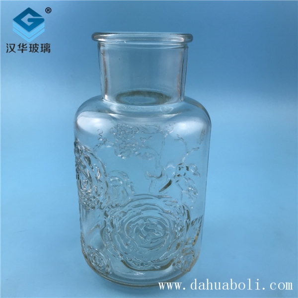 600ml玫瑰浮雕玻璃花瓶