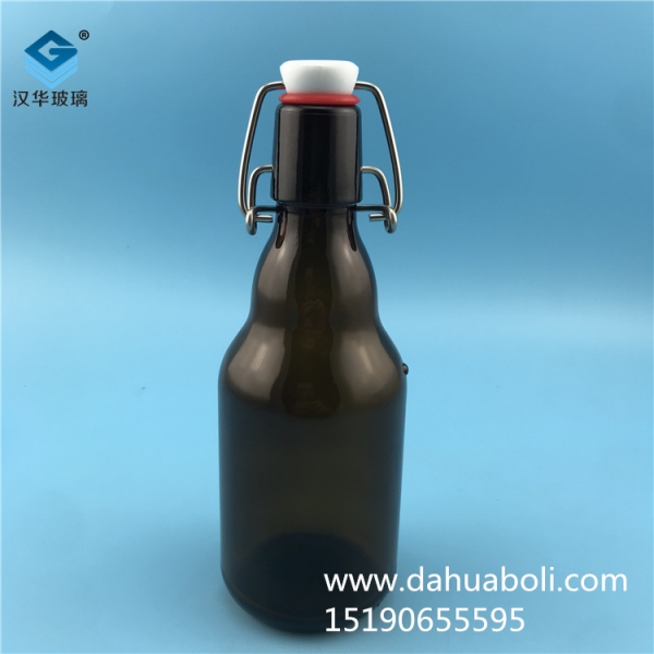 330ml茶色玻璃小熊卡扣玻璃啤酒瓶